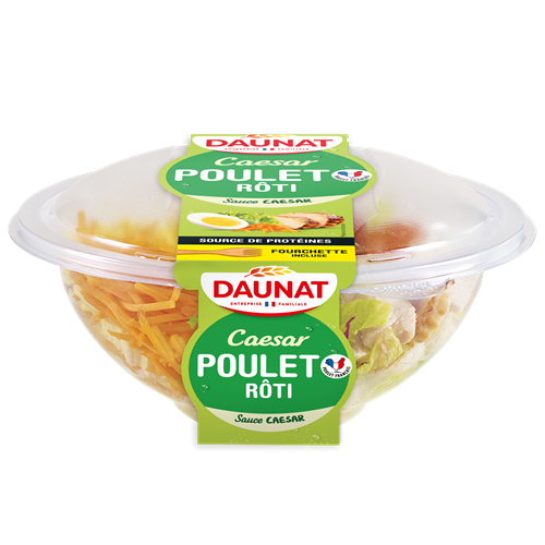 Pour un repas source de protéines, avec des crudités croquantes, laissez-vous tenter par nos 5 recettes de salades sur lit de crudités. Le poulet de nos salades est d'origine française. Notre salade est vendue avec une fourchette pour plus de praticité lors de votre pause repas ! La sauce, en format individuel vous permet de choisir votre propre dose.