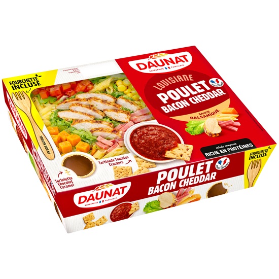 Cette salade est accompagnée d'une entrée et un dessert : un délicieux tartinade aux tomates avec ses crackers et une tartelette chocolat-caramel !